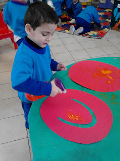 In this activity children had to sort the coloured eggs in 4 different containers (blue, orange ,red, yellow) and when they picked up all the eggs they had to count 1-2-3-4-5 eggs each. They enjoyed doing this activity as they had to run and search for eggs and concentrate where to put the egg.